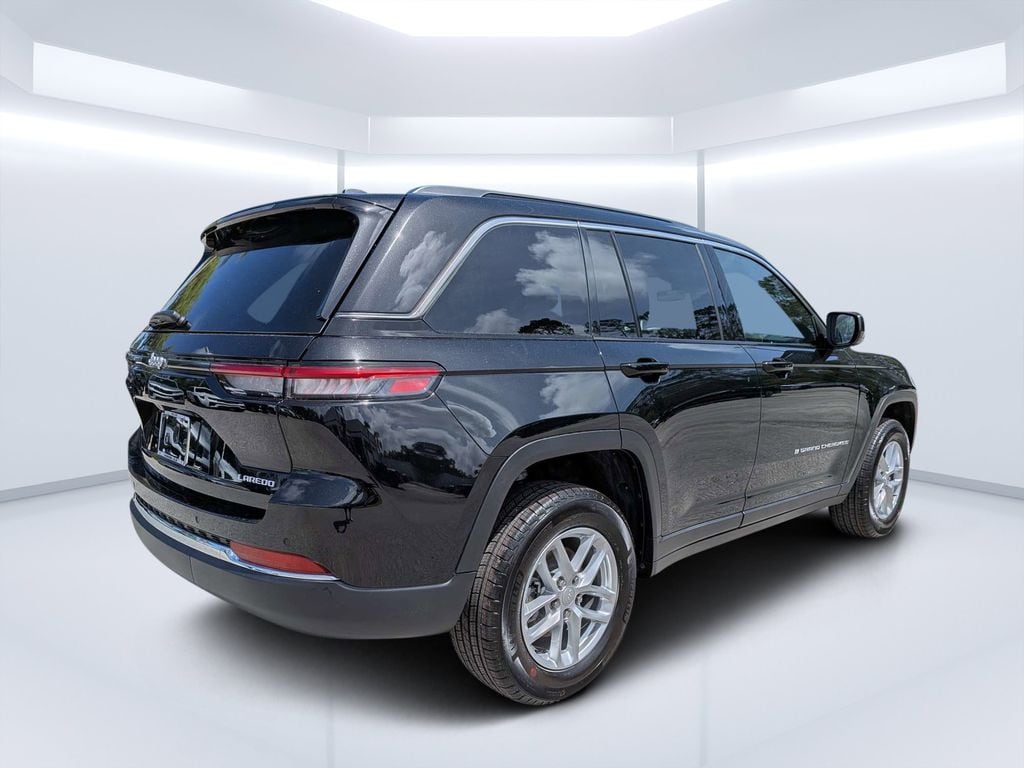 Exterior highlights include the sleek black paint, Gloss Black exterior mirrors, and 18-inch fully painted aluminum wheels that give this Grand Cherokee a bold, modern look. The Laredo's versatile suspension system and four-wheel independent suspension provide a smooth, refined ride, whether you're navigating city streets or venturing off the beaten path.